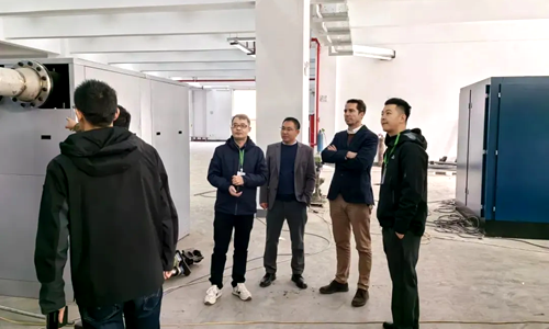 在訪問過程中,蓋亞公司鄒總與客戶蔣總帶阿特拉斯科普柯集團(tuán)副總裁Kris Leunckens一行參觀了紐曼泰克品牌冷干機(jī)、吸干機(jī)、變頻冷干機(jī)等眾多產(chǎn)品,介紹了該廠整個(gè)生產(chǎn)工藝流程與壓縮空氣品質(zhì)等應(yīng)用。