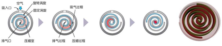 1.經(jīng)過固定渦旋外側(cè)的吸入口吸入空氣。