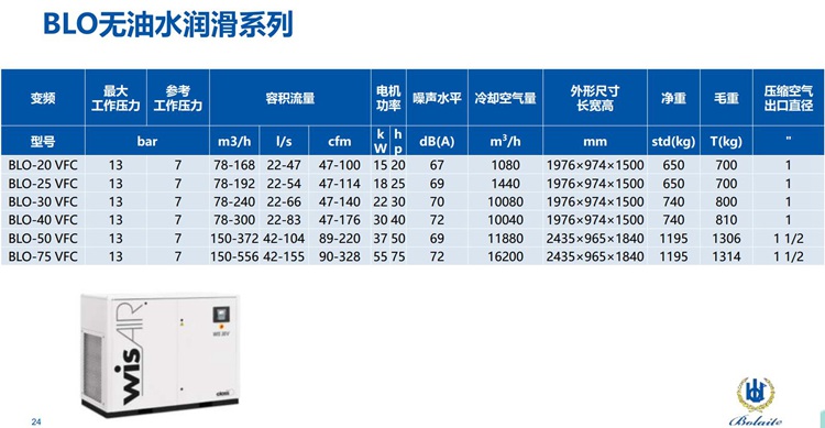 博萊特 BLO 無油水潤滑系列空壓機