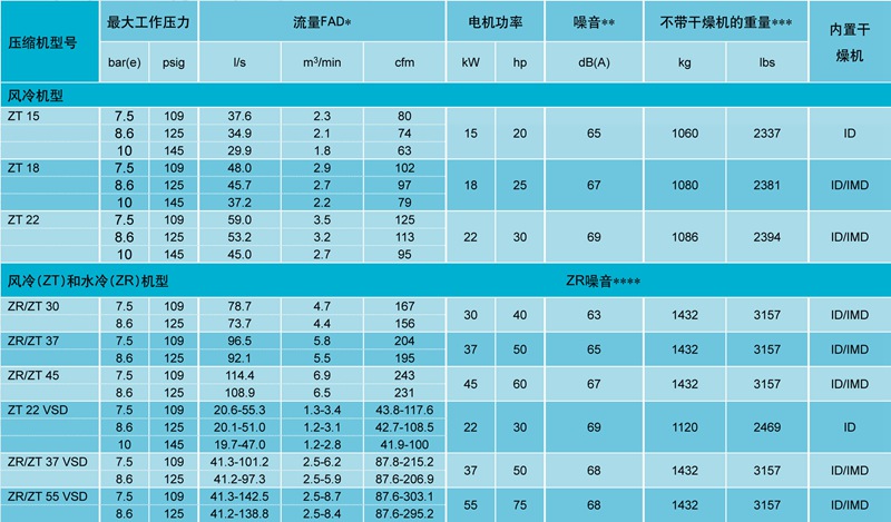 阿特拉斯ZT15-22, ZR/ZT 30-45, ZR/ZT 22-37-55 VSD,無油壓縮空氣質量高、經(jīng)濟