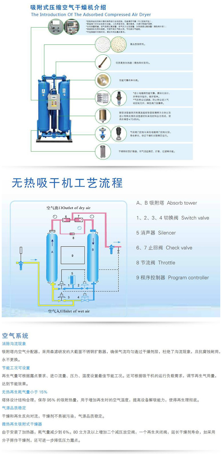 處理氣量:1.2m3-160m3/min 工作壓力:0.6-1.6mpa 再生氣量:≤12-15% 壓力露點:-20℃--40℃ 進氣含油量:≤0.01ppm 干燥劑:活性氧化鋁/氧化鋁
